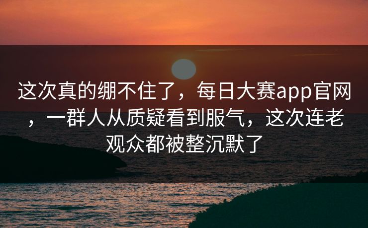 这次真的绷不住了,每日大赛app官网,一群人从质疑看到服气,这次连老观众都被整沉默了